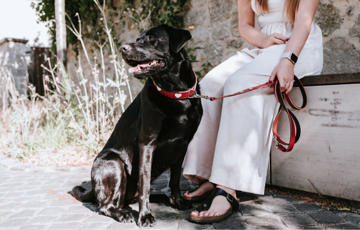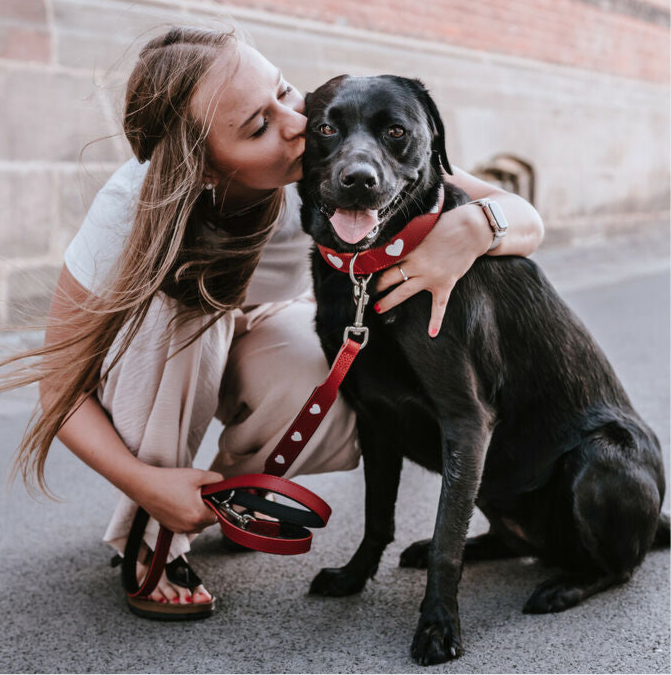 Lederhundeleine Hunter Rot mit Herzchenmuster (2m Länge, verstellbar)